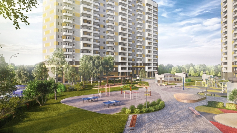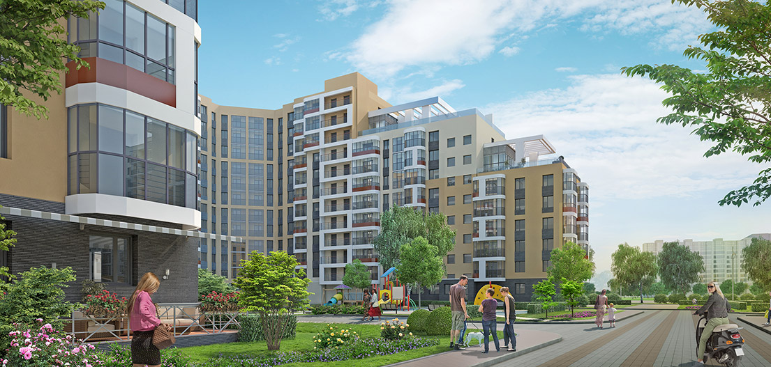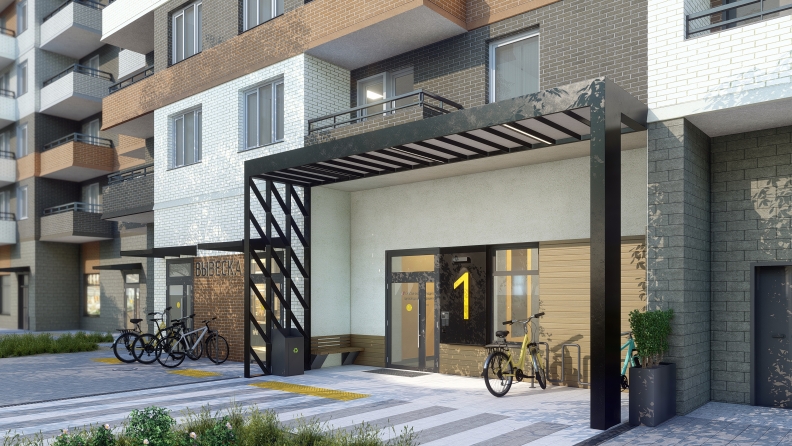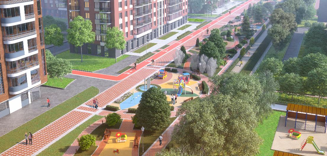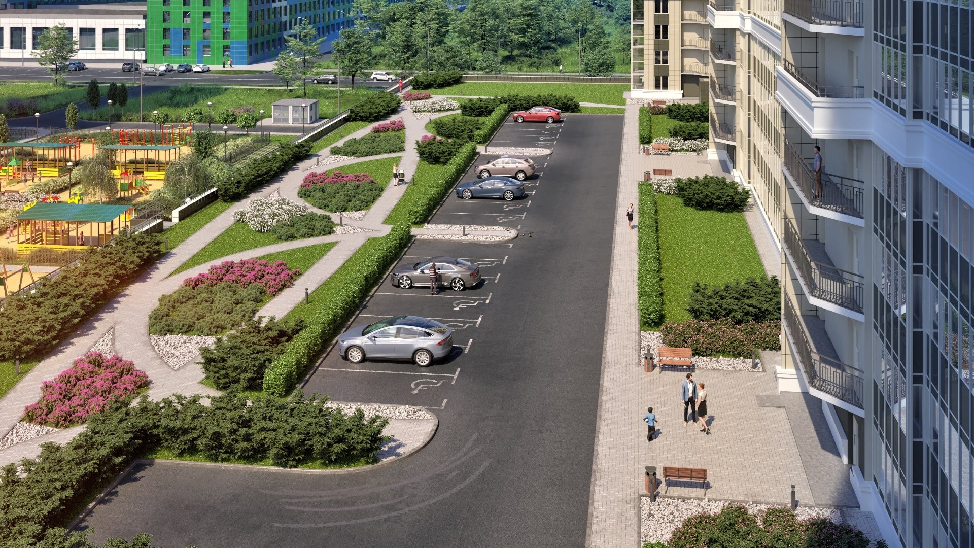 В жилом комплексе «Елизаровский» реализована концепция «двор без машин»: въезд будет разрешен только для спецтранспорта, а все парковочные места вынесены за внешний периметр комплекса.