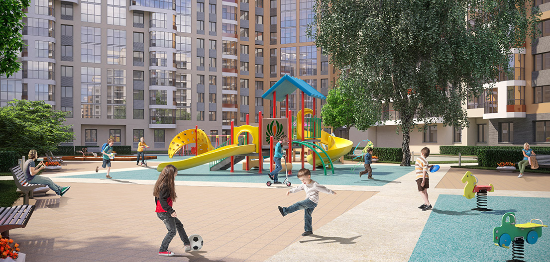 Вход на закрытую придомовую территорию будет осуществляться с помощью магнитного ключа. Полное отсутствие свободного автомобильного движения и посторонних людей во дворе обеспечит безопасность для вас и ваших детей.